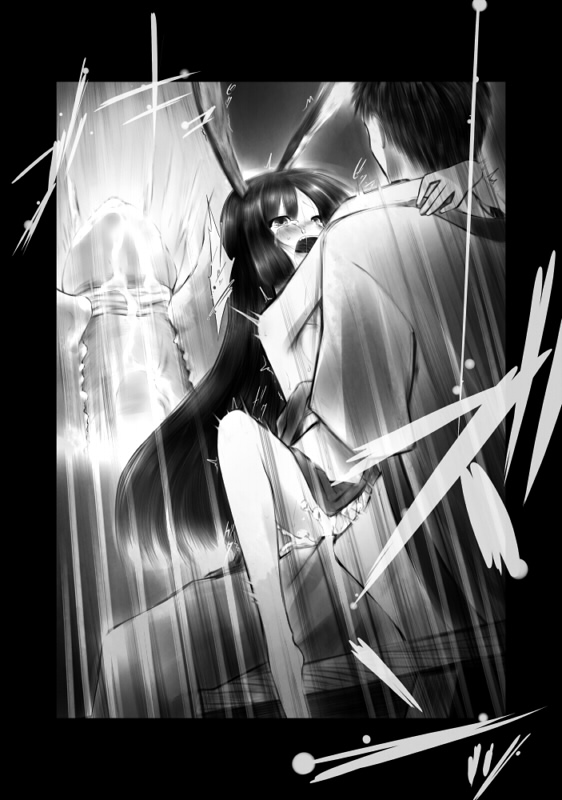 「無月の名月」 作:匿名希望 その日は、夜だというのに蝉が鳴いていた。 それに負けじと遠く祭囃子が続く。 夏だな。 そう実感すると、夏の暑さも心地よく感じ…… 「陽司! なにを手を止めておる! 氷菓子を四つ追加じゃ!」 ……感じるわけがねぇ!! 右手のハンドルを高速回転させながら、左手の紙カップを動かし削れた氷を盛っていく。 「りょ、了解ぃ! そっち三つ上がったからシロップをかけてくれ!」 業務用の冷凍庫に飽きたらず、クーラーボックスを十個いっぱい用意してもなお、恐ろしい勢いで消えていく氷の塊たち。 「陽司!! イチゴとメロンとレモンとブルーハワイのシロップと、練乳と小豆も無いぞ!!」 「つまり全部だな! 裏口のケースにそれぞれ入ってる!!」 ひっきりなしに来る注文に、もはや両腕は意識を離れ機械のように淡々と猛烈に動く。 「陽司ー!! スプーンが足りぬ――っ」 だがそれも間に合わずに怒涛の忙しさは巻き起こり。 「裏口に注文した分が! って氷が切れるっ!?」 『期間限定かき氷一杯30円』 全てこれが原因であった。 恐らくというか、確実に価格破壊しているそれは一部では露店殺しと言われているらしいが、知ったことではない。 出店のように場所代を取られるわけでもなく食堂での販売。 月見の我がままで神社に出店が出せない分、あざとくてもやらねばならない。 どうせお客も神社に着く頃にはかき氷は食べ終わっている。 だったら少しぐらい儲けてもいいじゃないか。 「陽司ぃい!! 氷菓を七つ追加じゃぁぁああ!!」 「ちょっと待てぇえ!! 今新しい氷を出すからぁぁああ!!」 そんなこんなで、俺は(嫌な)夏を満喫していた。 そして祭りも終わり、地獄の軍団のようなお客がいなくなった後は。 「今夜も元気だ祭りの片付けー……はぁ」 そうして町内会の関係上、祭りの後片付けに借り出される。 無論月見はいない。 なにかと神社を嫌うあいつには店の片づけを押し付けて、早々に出てきた。 『は、白状者ぉぉおお!!』という罵倒を背に受けたがこっちも肉体労働だ。 氷やシロップでドロドロな調理場や大量に散乱した紙カップやスプーンやその他もろもろあったが……うん、しかたがない。 ぱんぱんになった腕で提灯や大きな看板などを片付けてゆく。 黙々とした作業は、思考を嫌でも働かせる。 最近、少し店の雰囲気が変わった。 なにが、とは言わない。具体的なものをあげることができないが、なにかが変わった。 ただ、いつも……生まれてから当たり前にあった存在が、変質したのだろうか。 傍にいると意識してしまう。 肌が触れると思い描いてしてしまう。 目に入れると想像してしまう。 それが恋や愛などの部類ならばまだいいが、そうではない。 初夏辺りから、急に月見を――傍に居た存在を女として見始めていた。 なぜかどうしてか、理由は判らない。 判ったところでどうしようもないだろうが。 だが、女として意識したところで手を出すわけにはいかない。 あれは家の守り神みたいなもので、俺にとっては姉のようで母のような存在。 今更それを穢せるわけもなく、かといって罪悪感から処理することも出来ない。 そして彼女は常に傍にいる。 正直、生殺しだった。 そうなると自然に月見を避けるようになり、どうも余所々々しくなる。 時期も時期であり、夏祭りや期間限定などの忙しさに押されなんとか誤魔化してきたが、それも今日終わった。 どうやって振り切ろう。 だが、家を出るわけにもいかない。 そうした思考は堂々巡りとなり……気がつけば片付けは粗方終わっていた。 額に浮かんだ浮かんでいた汗を拭う。 櫓などといった大掛かりな物は明日改めて解体することになっている。 挨拶もそこそこに神社を後にした。 風は無い。 祭りの余韻か、ひどく周囲が暑く感じる。 作業していたのもあり、シャツは汗でびっしょりだった。 先ほどのことを考えると、暑さにやられたのかくらくらする。 そして境内の階段を降り切った所で。 「遅かったの陽司」 入り口の鳥居に寄りかかる月見がいた。 「……っ」 一瞬思考が止まる。 「どうしたんじゃ。わしが迎えに来るのが不満かえ?」 だが内心を表に出すわけにはいかない。 「いや、入り口とはいえ。あんなに嫌がっていたのによく来たな」 「片づけが早く終わって手持ち無沙汰だったんじゃ。まあ、鬼のかく乱と思うがいい」 「兎のくせに」 「例えじゃ馬鹿者。では帰るぞ」 「へいへい」 月見が先導し、その歩幅に合わせてゆっくり歩く。 満月が照らす下、道の左右に広がる田園が光に晒され、草原のように輝く。 言葉は広く遠くまで届き消え、ただ熱気だけが返るのみ。 「ふぅ……祭りも終わってしもうたの」 「ああ、だがまだ町内会の小さいのがあるだろ」 「あれとは規模が違うじゃろ」 出来るだけいつも通りを意識するが、祭りの余韻か、夏の熱気か。 思考は煮詰まり、何を話しているのかすら霞んでいく。 「まあじゃが、今日の売り上げは――陽司?」 危ない、そう思った時に